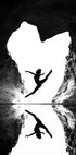 Dieses beeindruckende Schwarz-Weiß-Kunstwerk zeigt eine Ballerina, die anmutig in eine herzförmige Höhle springt, wobei sich ihr Spiegelbild im stillen Wasser spiegelt. Die dramatische Silhouette vereint Tanz, Natur und Romantik und schafft einen kraftvollen visuellen Ausdruck von Leidenschaft, Eleganz und zeitloser künstlerischer Schönheit.
