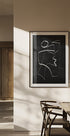 Ein auffälliges abstraktes Line-Art-Poster mit ausdrucksstarken weißen Strichen auf tiefschwarzem Hintergrund. Minimalistisch und dennoch auffällig, unterstreicht dieses zeitgenössische Stück die Schönheit der Einfachheit und Form und eignet sich perfekt für zeitgenössische, Boho- oder skandinavische Innenräume.