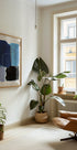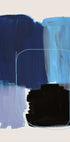 Ein auffälliges abstraktes Poster mit ausdrucksstarken Pinselstrichen in tiefem Marineblau, sanftem Lila, Himmelblau und Schwarz. Die malerischen Texturen und überlappenden Farbfelder schaffen eine moderne Komposition, die Stärke und Subtilität in Einklang bringt – perfekt für moderne Innenräume, minimalistische Räume oder Galeriewände.
