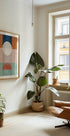 Dieses abstrakte geometrische Poster zeigt eine moderne Komposition aus Kreisen und Rechtecken in Erdtönen wie Terrakotta, Marineblau, Rouge und Salbeigrün. Mit einer minimalistischen Mid-Century-Ästhetik vereint es Ausgewogenheit und Wärme und wird zu einem stilvollen Wandkunstwerk für moderne Innenräume.