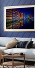 Eine brillante Nachtansicht der berühmten Grachtenhäuser Amsterdams, deren farbenfrohe Fassaden im Licht leuchten und sich perfekt im stillen Wasser spiegeln. Dieses lebendige Stadtbild zelebriert niederländische Architektur, urbanen Charme und die magischen Spiegelungen, die Amsterdam nach Einbruch der Dunkelheit unvergesslich machen.