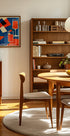 Ein auffälliges und farbenfrohes grafisches Poster des legendären Aperol Spritz-Cocktails mit geometrischen Formen in leuchtendem Orange, Blau, Schwarz und Weiß. Mit seinem modernistischen Design und seiner verspielten Energie fängt das Kunstwerk die Essenz der italienischen Aperitivo-Kultur ein und eignet sich perfekt für Küchen, Bars und soziale Räume.