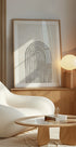 Ein beruhigendes, minimalistisches Poster mit einer Reihe handgezeichneter grauer Bogenlinien auf einem sanften beigen Hintergrund. Der organische Ausdruck betont Einfachheit und Ausgewogenheit und passt perfekt zu japanischen, skandinavischen oder modernen Innenräumen.
