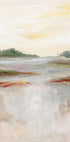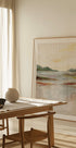 Ein sanftes und eindrucksvolles Landschaftsgemälde mit ruhigen Pinselstrichen und gedämpften Farben. Dieses abstrakte Wasserlandschaftsbild vereint Erde, Wasser und Himmel in einem friedlichen Horizont, der Gefühle der Ruhe und Kontemplation hervorruft. Ein perfektes Kunstwerk, das jedem Raum eine beruhigende und von der Natur inspirierte Atmosphäre verleiht.