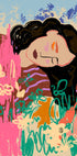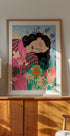 Ausdrucksstarke Figur umgeben von bunten Blumen Poster