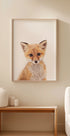 Ein bezauberndes High-Key-Porträt eines Fuchsjungen, aufgenommen vor einem einfachen weißen Hintergrund. Das weiche Fell, die großen Augen und die feinen Details unterstreichen die Unschuld und Schönheit dieses jungen Waldtieres. Perfekt für das Kinderzimmer, Tierliebhaber oder moderne minimalistische Innenräume.