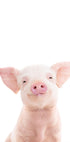 Ein herzerwärmendes Porträt eines Ferkels, aufgenommen vor einem reinweißen Hintergrund. Die rosa Schnauze, die sanften Augen und der verspielte Gesichtsausdruck vermitteln ein Gefühl von Unschuld und Charme. Perfekt für die Dekoration auf dem Bauernhof, im Kinderzimmer oder für alle, die niedliche Tierporträts lieben.