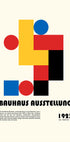 Ein unverwechselbares Bauhaus-Ausstellungsplakat von 1923 mit kräftigen geometrischen Formen in Rot, Blau, Gelb und Schwarz. Dieses Vintage-inspirierte Design ist eine Hommage an die Bauhaus-Bewegung mit abstrakten Formen, klaren Linien und einem minimalistischen Layout. Ein zeitloses Stück Art Deco und modernistische Designgeschichte.