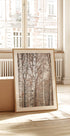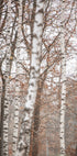 Eine friedliche Waldszene mit schlanken, hoch aufragenden Birken mit ihrer weißen Rinde vor einem gedämpften Herbst- und Winterhintergrund. Die feinen Zweige und verbliebenen Blätter schaffen eine poetische Atmosphäre, die die Wärme des Herbstes mit der Ruhe des Winters verbindet. Perfekt für Naturliebhaber und gemütliche Häuser.