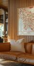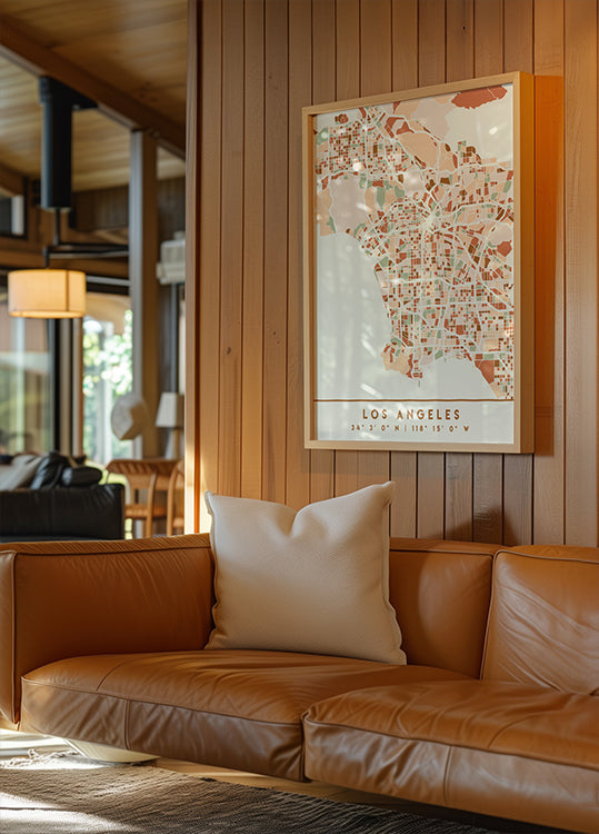 Black Maps Earth Tones 42 von Emiliano Deificus zeigt eine stilisierte Karte von Los Angeles in tiefen, erdigen Tönen. Feinmaschige Straßen, Hollywood-Hügel und die Konturen der Küste bilden ein elegantes, grafisches Muster, das den Rhythmus der Großstadt einfängt und sowohl in modernen als auch klassischen Räumen ein perfektes Statement setzt. Hängen Sie es einzeln oder an einer Galeriewand auf.