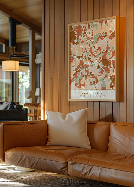 Black Maps Earth Tones 45 von Emiliano Deificus ist ein stilisierter Stadtplan von Manchester in gedämpften Erdtönen und tiefem Schwarz. Feine Linien offenbaren Straßen und Viertel als grafisches Muster, bei dem Kontraste und Texturen Tiefe erzeugen. Ein elegantes, urbanes Statement-Poster, das Ruhe und rohe Energie vereint. Perfekt für modernes Zuhause und Büro.