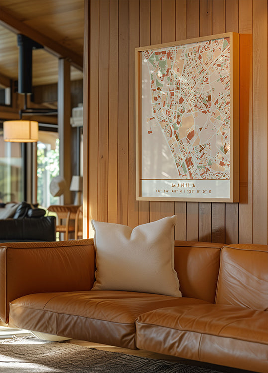 Black Maps Earth Tones 46 von Emiliano Deificus verwandelt die lebendige Textur der Stadt in eine raffinierte, grafische Komposition. In tiefschwarzen Oberflächen und Erdtönen zeichnen sich Straßen und Viertel wie ein elegantes Raster aus, in dem Breiten- und Längengrade Richtung und Rhythmus andeuten – eine ruhige Hommage an Manila. Die Seele der Stadt in minimalistischer Form.