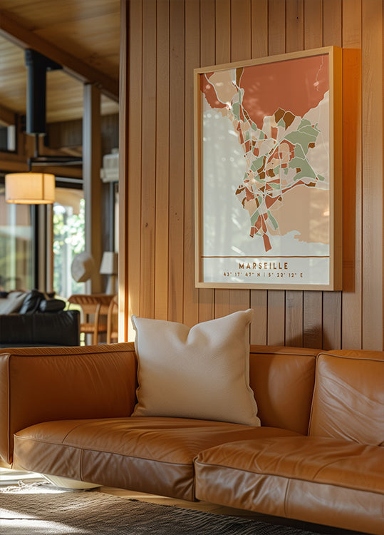 Black Maps Earth Tones 48 von Emiliano Deificus ist ein stilisierter Stadtplan von Marseille in warmen Erdtönen auf tiefem Schwarz. Die klaren Linien und die grafische Ruhe fangen den Puls der Stadt und die Küstengeometrie ohne Lärm ein und sorgen für einen raffinierten, zeitlosen Ausdruck, der alles vom Wohnzimmer bis zum Büro aufwertet. Perfekt für den nordischen Minimalismus.