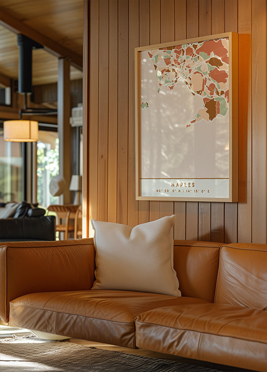 Black Maps Earth Tones 58 von Emiliano Deificus fängt Neapel als poetische, dunkle Karte ein, auf der warme Erdtöne das Straßennetz, die Viertel und die gewundene Küste zeichnen. Die subtilen Kontraste betonen den Rhythmus der Stadt und sorgen für einen raffinierten, grafischen Ausdruck, der der Wand Ruhe, Tiefe und Charakter verleiht. Schafft einen ruhigen Fokus.