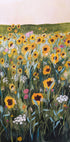 Ein lebendiges Gemälde einer Sommerwiese voller goldener Blüten, zarter Wildblumen und üppigem Grün. Die Pinselstriche fangen die Wärme und Schönheit der Natur ein und bringen die Landschaft mit einer frischen und fröhlichen Atmosphäre in Ihr Zuhause.