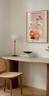 Ein auffälliges und modernes Blumenposter mit leuchtenden Blumen in Rot, Rosa, Orange und Weiß. Inspiriert von Vintage-Reiseplakaten unterstreicht dieses Kunstwerk den Charme von Bologna und Italiens floralem Erbe.