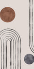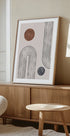 Ein elegantes abstraktes Poster mit starken geometrischen Formen, Kreisen und geschwungenen schwarzen Linien auf beigem Hintergrund. Dieses minimalistische Kunstwerk ist vom modernen Design der Mitte des Jahrhunderts inspiriert und vereint Balance, Rhythmus und Eleganz, was es zu einem vielseitigen Stück für moderne Innenräume macht.