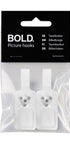 Bold Picture Hook inkluderer to e-handels­pakker (hver med 2 kroge) og én butiks­display­pakke. Dette er verdens første billedkrog, der er kompatibel med alle typer rammer og vægmaterialer – uanset om det er beton, gipsplader eller træ. Den monteres på få sekunder med en hammer – helt uden boring, rawlplugs eller skruer.