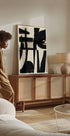Ein auffälliges monochromes abstraktes Kunstwerk mit kräftigen schwarzen Pinselstrichen auf neutralem Hintergrund. Die strukturierten Linien und ausdrucksstarken Formen schaffen ein dynamisches Gleichgewicht zwischen Bewegung und Stille und machen es zu einem modernen Statement im zeitgenössischen Dekor.