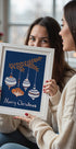 Fröhliche kleine Weihnachtskugeln, blaues Poster