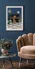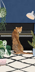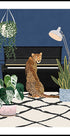 Eine skurrile und stilvolle Illustration eines Geparden, der an einem Klavier sitzt, umgeben von üppigen Zimmerpflanzen und modernem Dekor. Mit kräftigen Farben und verspielten Details vereint das Werk Musik, Tierwelt und Interior-Charme und wird zu einem einzigartigen Statement für Tierliebhaber und Designbegeisterte.