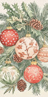 En stemningsfuld juleplakat med maleriske penselstrøg: dybgrønne grene, glinsende røde kugler og et strejf af kristtorn samler sig i et varmt, nostalgisk motiv. De bløde, impressionistiske farver og den retro aura vækker minder om vinteraftener, dansende lys og juletræets stille magi. Perfekt til at skabe julehygge i stue, entré eller køkken.