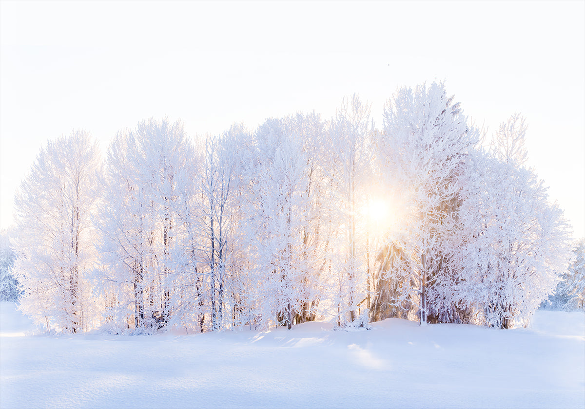 Das Winterlicht kehrt in einen stillen Waldraum zurück: Schlanke Bäume stehen in Frost und Schnee, während eine sanfte, goldene Sonne durch die kühlen Blautöne bricht und lange Schatten zwischen die Stämme wirft. „The Light Returns“ von EMELIEMaria fängt die Ruhe eines hellen, klaren Morgens ein, an dem die Natur ruhig atmet und Hoffnung sprießt.
