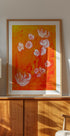 Ein kräftiges und ausdrucksstarkes Blumenkunstwerk mit dynamischen Pinselstrichen in warmen Ocker- und Orangetönen, akzentuiert durch zarte weiße orchideenartige Blüten. Inspiriert von expressionistischen Stilen mit einem modernen Touch, bringt dieses Stück tropische Wärme und Energie in jeden Raum.