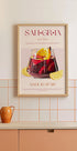 Ein lebendiges Vintage-inspiriertes Poster von Sangria, dem klassischen spanischen Punsch aus Rotwein und frischem Obst. Mit kräftiger Typografie, Zitrusdetails und einem Glas voller Farbe erinnert das Kunstwerk an iberischen Charme und zeitlose Barkultur – perfekt für Küchen, Esszimmer oder Cocktail-Enthusiasten.