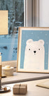 „Polar Bear Dreams“ von Bainai ist eine charmante, minimalistische Illustration eines verträumten Eisbären auf schneebedecktem Eis vor einem ruhigen blauen Hintergrund. Der verspielte Ausdruck und die weichen Formen erzeugen Wärme und Ruhe, perfekt für das Kinderzimmer oder die moderne nordische Inneneinrichtung, wo Gemütlichkeit und Fantasie Platz finden. Bringt jeden Tag ein Lächeln.