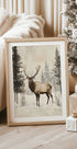 Elk Winter Nostalgia by Pictufy Studio Premiumpapir med en mat overflade og et elegant udseende. Den matte finish reducerer genskin og giver et raffineret, tidløst look. Stærkt og holdbart til langvarig brug, ideelt til både professionelle omgivelser og dekorative udstillinger.