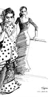 Der Puls des Flamenco wird in einer lebhaften Skizze zweier Tänzer in gepunkteten Kleidern eingefangen, die mitten in einem dramatischen Schwung gefangen sind. Die ausdrucksstarken, skizzenhaften Linien und spanischen Bezüge zu Sevilla und Madrid verleihen dem Motiv Energie und Charme. Eine Hommage an Freundschaft, Rhythmus und Stil – von Awol Art Alex. Punkte, Volants und Attitüde machen das Stück zum Hingucker in jedem Raum.