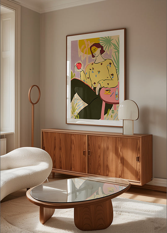 Woman With Apple von Sandra Poliakov – Hochwertiges Papier mit glatter, matter Oberfläche und eleganter Haptik. Die matte Oberfläche reduziert Blendungen und sorgt für ein raffiniertes, zeitloses Aussehen. Robust und langlebig für den dauerhaften Einsatz, ideal sowohl für den professionellen Einsatz als auch für dekorative Präsentationen.