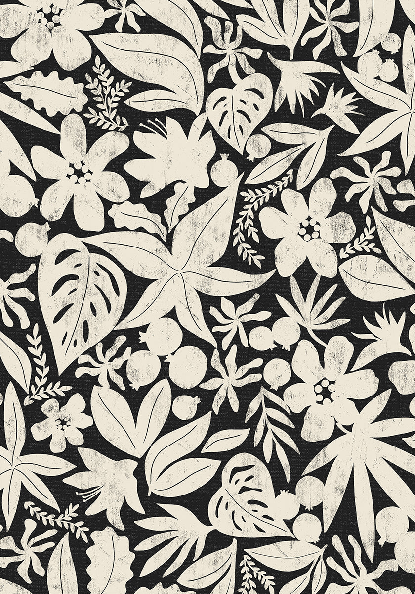 Cosy von Dana Ďuričeková verbindet modernen Minimalismus mit der Poesie der Natur: ein handgezeichnetes Schwarz-Weiß-Motiv mit grafischen Silhouetten aus Blättern, Blumen und Früchten. Die starken Kontraste und feinen Texturen schaffen Ruhe und Präsenz, die sich sowohl für nordische als auch für tropische und künstlerische Räume eignen. Ein stilvolles Statement für den Eingangsbereich, das Wohnzimmer oder das Büro.