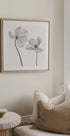 Eine poetische Studie derselben Tulpe von vorne und hinten: zwei monochrome Nahaufnahmen, bei denen Licht und Schatten die zarte Struktur und die eleganten Kurven der Blütenblätter betonen. Die Komposition ist minimalistisch und ausgewogen, eine ruhige botanische Geschichte, kreiert von der Fotografin Lotte Grønkjær. Ein grafischer, heller Ausdruck, der dem Raum zeitlose Ruhe verleiht.
