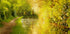 Eine atemberaubende malerische Landschaft, die einen friedlichen, in goldenes Sonnenlicht getauchten Flussweg einfängt. Üppiges grünes Laub harmoniert harmonisch mit warmen Tönen und erinnert an die heitere Schönheit eines Sommertages. Dieses Kunstwerk bringt Wärme und Ruhe in jeden Innenraum.