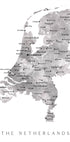 Dieses stilvolle Poster von Rosana Laiz Blursbyai zeigt die Niederlande in eleganten Grautönen. Eine minimalistische Karte mit feinen Konturen und dezenten Städtenamen wie Amsterdam, Rotterdam und Utrecht auf hellem Hintergrund. Ein ruhiger, skandinavischer Ausdruck, der Übersicht und zeitlose Atmosphäre im Raum schafft. Perfekt für den Eingangsbereich, das Wohnzimmer oder das Büro.
