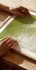 Green von Hilde Ghesquiere fängt einen poetischen Makromoment ein: sanfte Grüntöne, feine Federstrukturen und zarte Wassertropfen, die im Licht wie Perlen funkeln. Ein minimalistisches, beruhigendes Motiv, das zur Ruhe und Besinnung einlädt und die stille Poesie der Natur ins Zuhause bringt. Perfekt für skandinavisches Dekor.