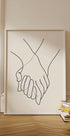 Eine minimalistische, monochrome Strichzeichnung zweier Hände, die sich in einem sanften, engen Griff treffen. Die klaren, schwarzen Linien auf weißem Hintergrund betonen Liebe, Vertrauen und Ruhe, während der negative Raum für Ausgewogenheit sorgt. Ein poetisches und stilvolles Motiv von Pictufy Studio II für Wohnzimmer, Schlafzimmer und Eingangsbereich. Ein dezentes Symbol für Präsenz, Romantik und Gemeinschaft.