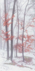 Eine ruhige Waldlandschaft, in der die letzten roten Herbstblätter vor einer dünnen Schicht Neuschnee leuchten. Dunkle Stämme verschwinden im Nebel und schaffen Tiefe und Ruhe, während sich die Kälte wie ein Schleier über den Waldboden legt. Herbstlicher Schnee von Ales Krivec fängt die Grenze zwischen Herbst und Winter mit poetischer Einfachheit ein. Ein ruhiger, nebliger Tag in der tiefen Stille des Waldes.