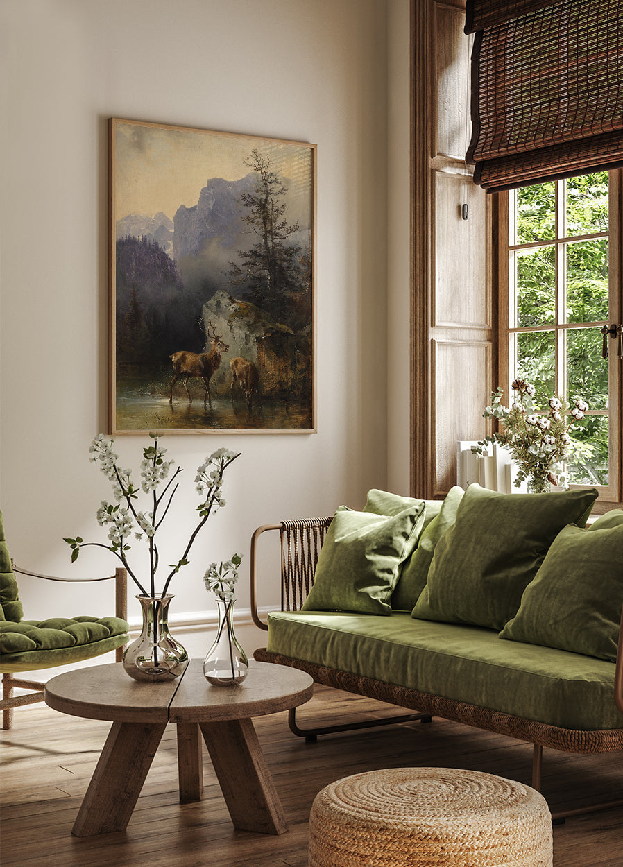 Hirsche und Tiere an der Wasserstelle von Friedrich Gauermann Poster