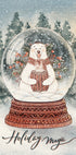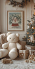 Holiday Magic af Olena Kovalova fanger julens poesi: En vintageinspireret scene med bjørn og kanin i vintervarme farver, der kredser om en rejseglobus under frostklar himmel. Dæmpede røde, grønne og tealnuancer, snefnug og glimtende lys skaber en drømmende, nostalgisk stemning – perfekt til årets hyggeligste hjørner.
