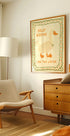 Eine fröhliche und humorvolle Illustration einer Gans mit der verspielten Phrase „Silly Goose on the Loose“, eingerahmt in einer volkstümlichen Bordüre. Dieser verspielte Druck verleiht einen Hauch von Spaß und gemütlichem Charme und ist die perfekte Wahl für Küchen, Kinderzimmer oder Innenräume, die Humor und Gemütlichkeit fördern.