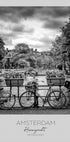 Eine eindrucksvolle Hommage an Amsterdam: Melanie Violas Arbeit fängt die Herengracht in elegantem Schwarz-Weiß ein. Klassische Grachtenhäuser spiegeln sich im Wasser, Fahrräder ruhen am Brückengeländer und ein ruhiges Boot gleitet unter schweren Wolken vorbei. Ein zeitloses Stadtbild, das die Poesie der Großstadt ins Zuhause bringt. Perfekt für alle, die klassische, urbane Ästhetik lieben.