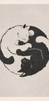 Ein minimalistisches Schwarz-Weiß-Kunstplakat mit zwei Katzen, die in einer Yin-Yang-Formation zusammenliegen und Gleichgewicht, Frieden und Harmonie symbolisieren. Ein zeitgenössisches Stück, perfekt für Katzenliebhaber und alle, die ein ruhiges, modernes Design schätzen.
