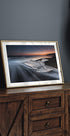 Ein dramatischer Moment auf den schwarzen Sandstränden Islands, wo sich die Wellen in der Abenddämmerung seidig glatt wie Diamanten um klare Eisstücke legen. Die flüchtigen Wasserspuren sorgen für Ruhe und Bewegung zugleich und laden zum Nachdenken ein. Erstellt vom Fotografen Raymond Hoffmann, der nordische Winterpoesie einfängt. Ein Hingucker für das Wohnzimmer, das Büro oder die Galeriewand.