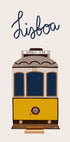 Eine charmante Hommage an den Puls Lissabons: Die ikonische gelbe Straßenbahn gleitet durch enge Kopfsteinpflasterstraßen zwischen pastellfarbenen Fassaden und einem Hauch Meeresbrise. Die spielerischen Handgesten und die urbane Atmosphäre fangen den warmen Rhythmus der Stadt ein. Illustriert von Menina Lisboa. Eine stimmungsvolle Stadtansicht mit grafischen Details, die Lust auf eine Reise nach Portugal weckt.