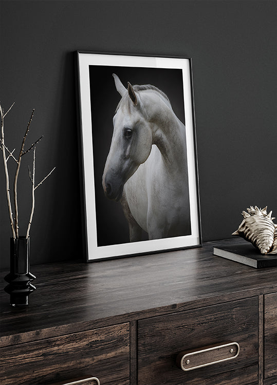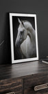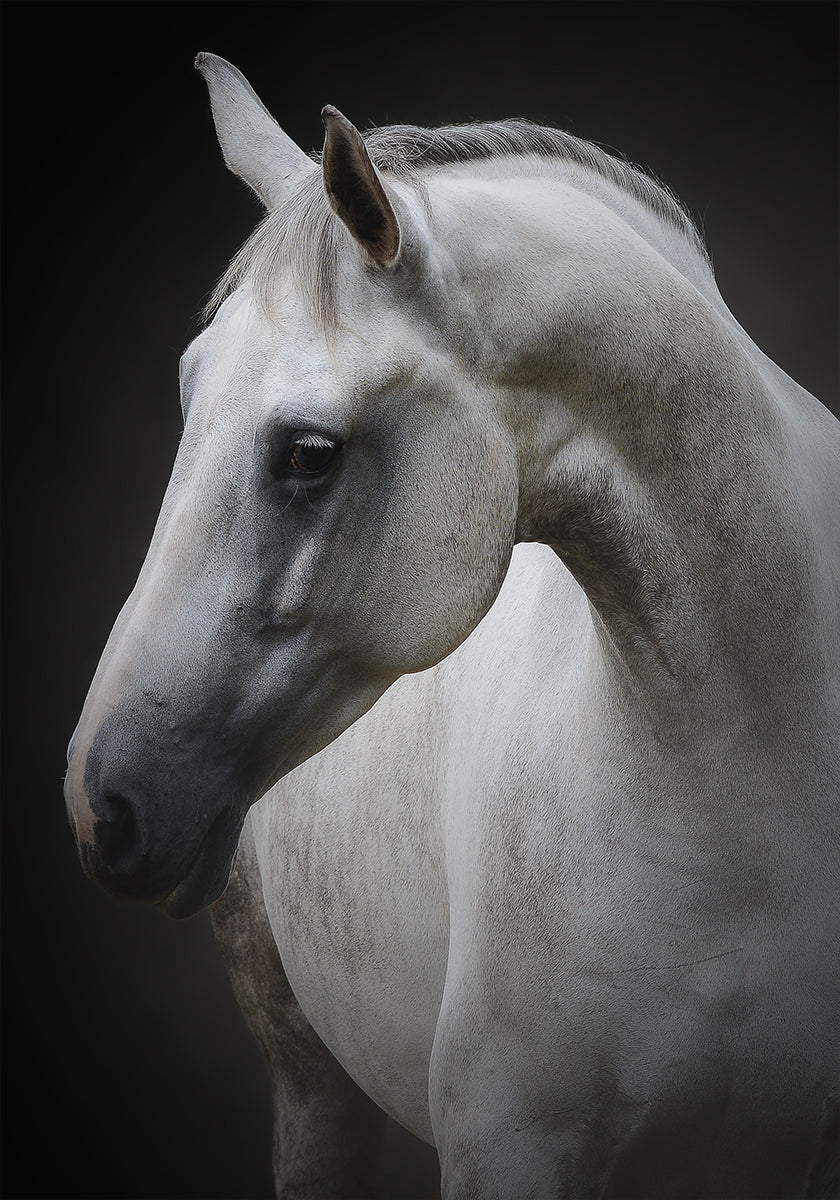 Maggie von Avishai Avivi fängt eine Stute im ruhigen Profil ein: der elegante Halsbogen, eine weiche, fließende Mähne und ein gedämpfter, neutraler Hintergrund. Feiner Minimalismus und sanftes Licht betonen die Anmut und Stärke des Tieres, sodass das Motiv Präsenz, Wärme und zeitlose, skandinavische Ruhe ausstrahlt. Ein poetisches Porträt für moderne, ruhige Räume.
