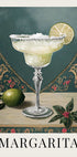 Dieses elegante Kunstwerk zeigt einen klassischen Margarita-Cocktail in einem dekorativen Glas, garniert mit einer Limettenscheibe. Vor einem kunstvollen Hintergrund vereint es Vintage-Charme mit einer raffinierten Zubereitung dieses zeitlosen Getränks. Perfekt für die Dekoration von Bars und Cocktail-Interieurs.