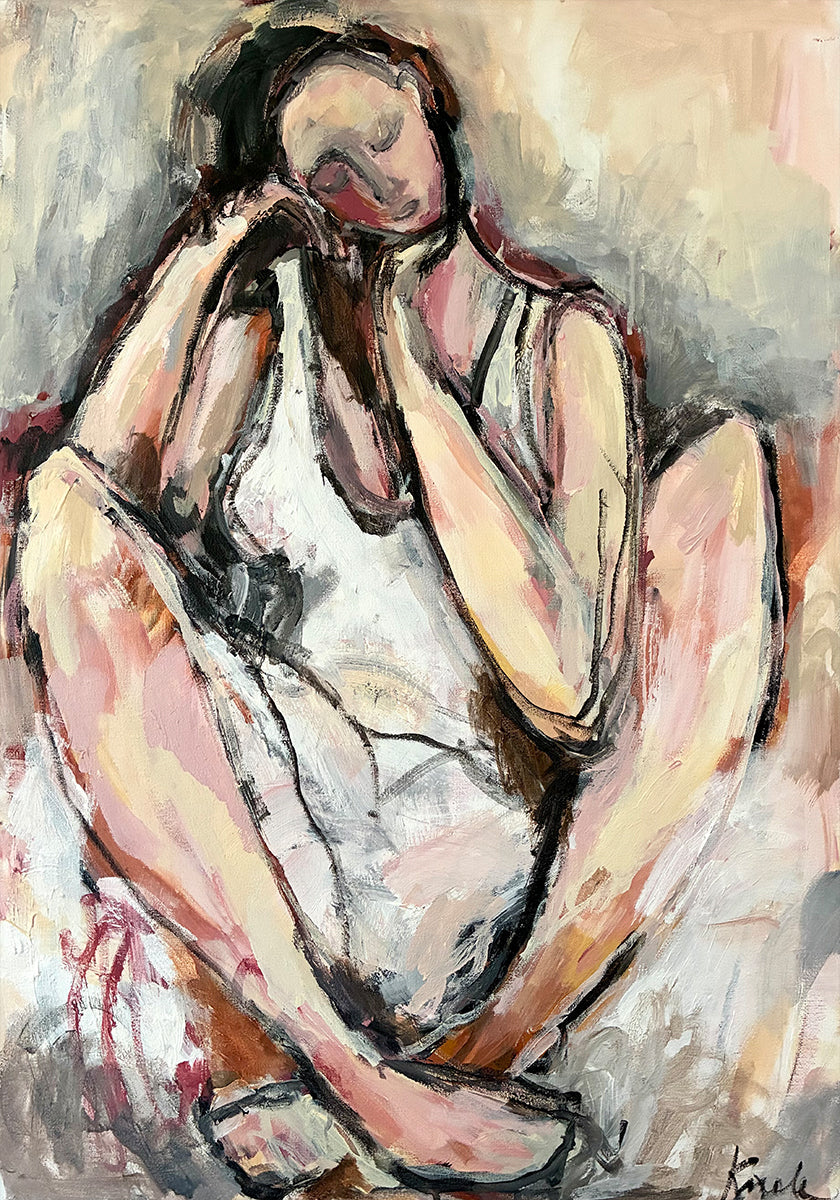 „Morning“ von Magdalena Krzak fängt den ruhigen Moment zwischen Schlaf und Erwachen ein: eine in sanfte Rosa- und Weißtöne gehüllte weibliche Figur, über deren Konturen das Morgenlicht gleitet. Der dezente, abstrakt-figurative Stil schafft Ruhe und Besinnung und verleiht dem Raum eine poetische, feminine Balance. Perfekt für das Schlafzimmer oder die ruhige Ecke.